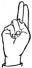 На ћирилици написано СТРАИЊА БРЕСНОПОЉАЦ састоји се из 18 слова [?]. Исписано ћириличном једноручном азбуком за глувонеме: